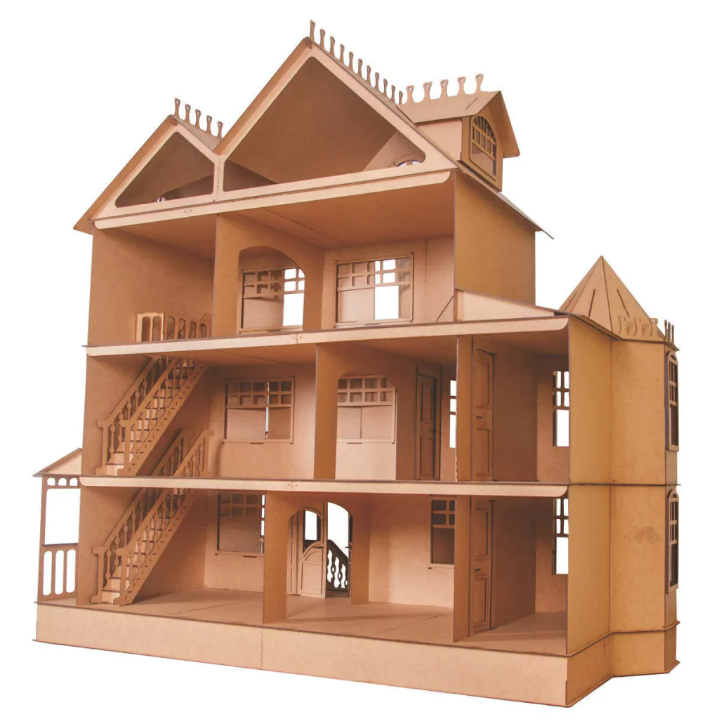 Todo o produto é enviado desmontado, e para sua montagem disponibilizamos um manual ilustrativo. A montagem é feita através de encaixes e colagem (precisa seguir o tutorial de montagem) sendo um desafio para toda a família a construção desta linda mansão.