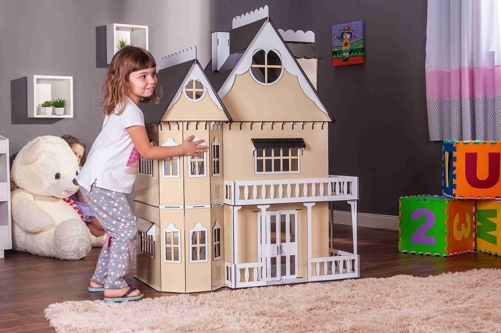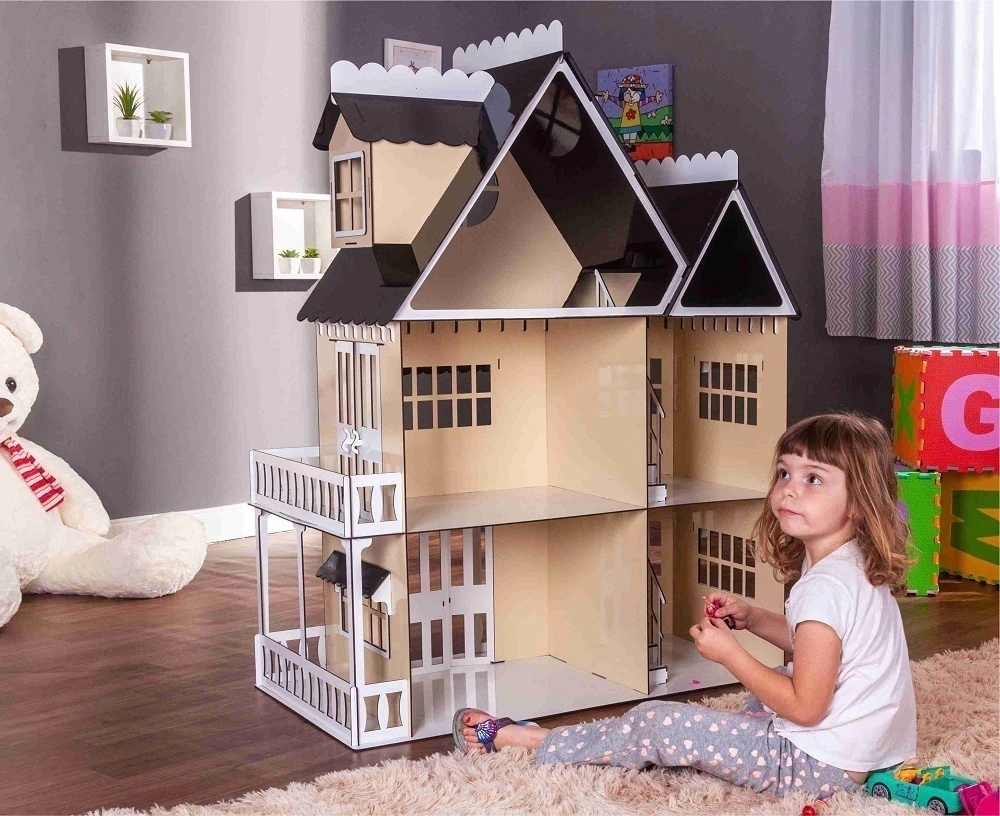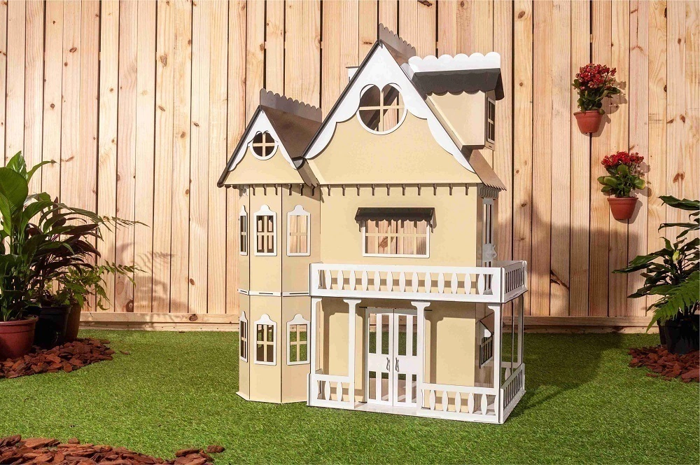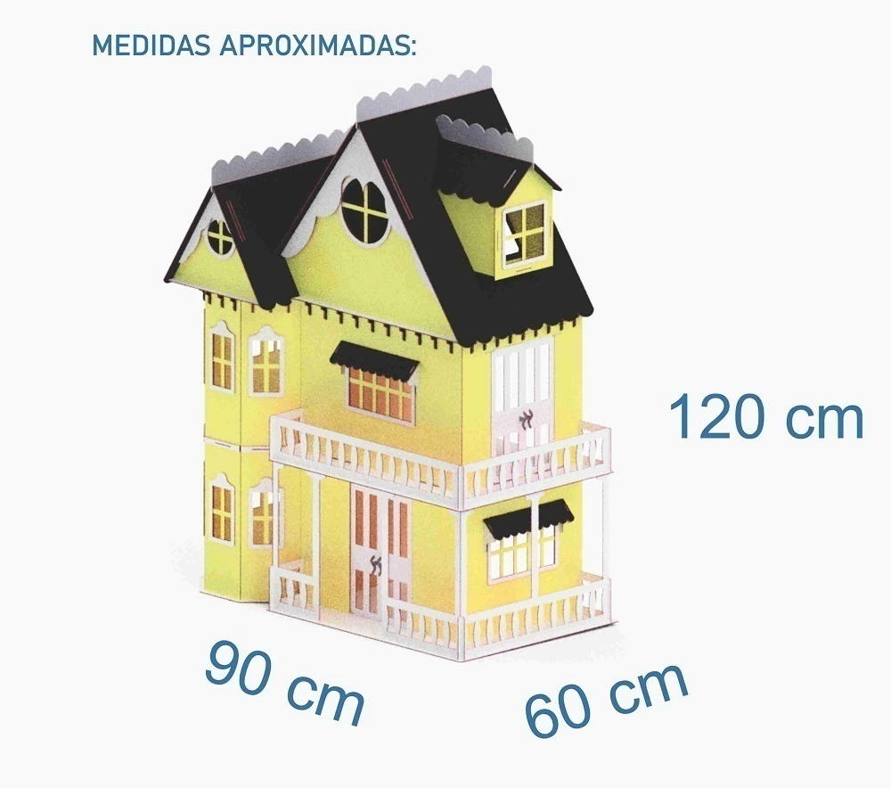 Confeccionada em mdf de 3 mm,a casinha de bonecas é composta por diversas peças,as quais se encaixam sutilmente devido a precisão de corte dos mesmos. Não acompanha móveis.