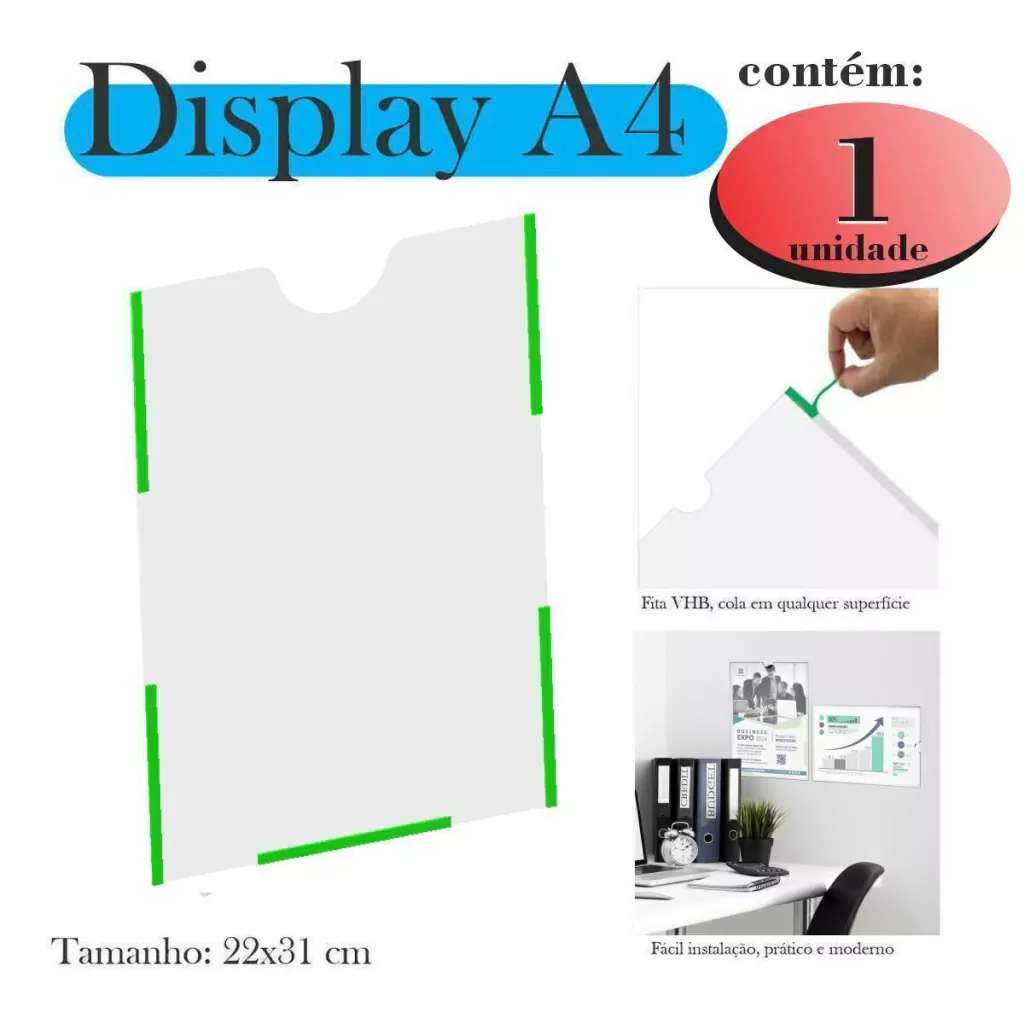 O display porta papel (folha) A4 ou expositor porta papel (folha) A4 de parede é a forma mais simples, fácil e eficiente de divulgação para diversos tipos de conteúdo, cardápio, fotos, aviso, lembretes, etc.