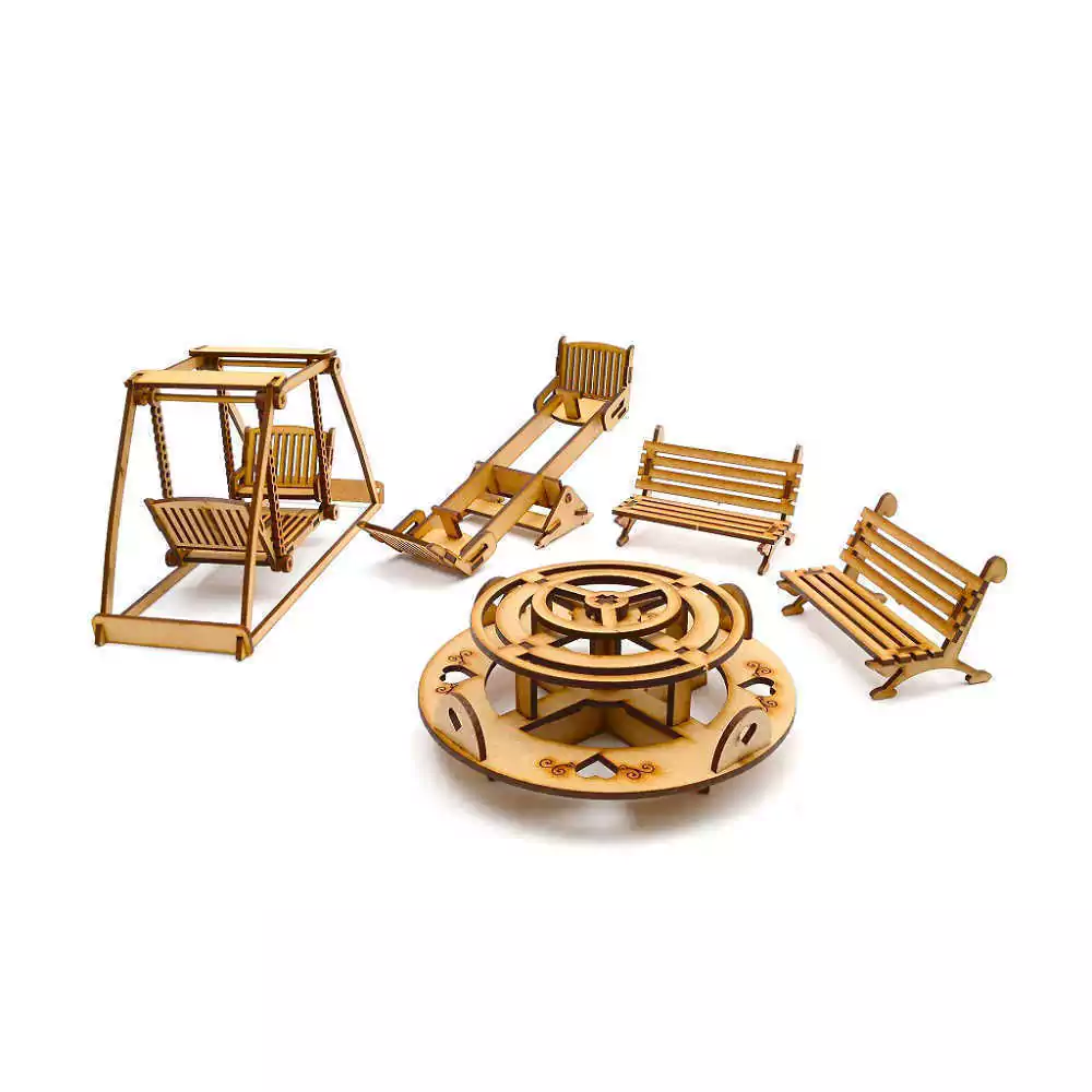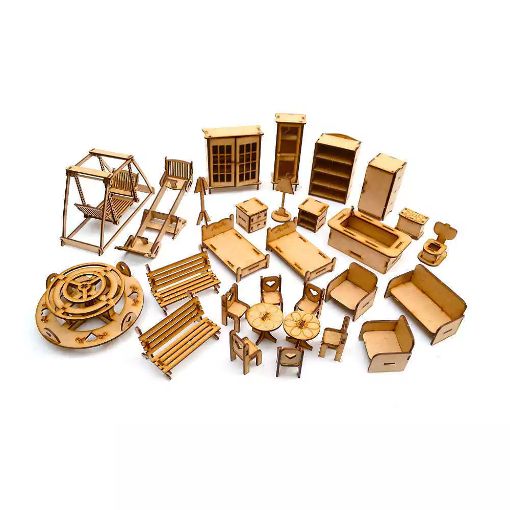 Confeccionada em mdf de 3 mm,a casinha de bonecas é composta por diversas peças,as quais se encaixam sutilmente devido a precisão de corte dos mesmos. ACOMPANHA KIT DE MÓVEIS