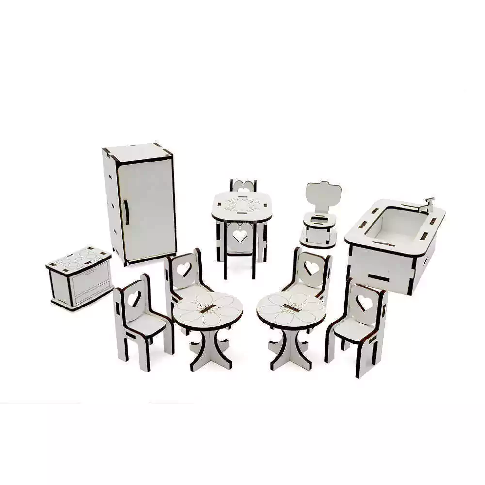 Confeccionada em mdf de 3 mm,a casinha de bonecas é composta por diversas peças,as quais se encaixam sutilmente devido a precisão de corte dos mesmos. ACOMPANHA KIT DE MÓVEIS