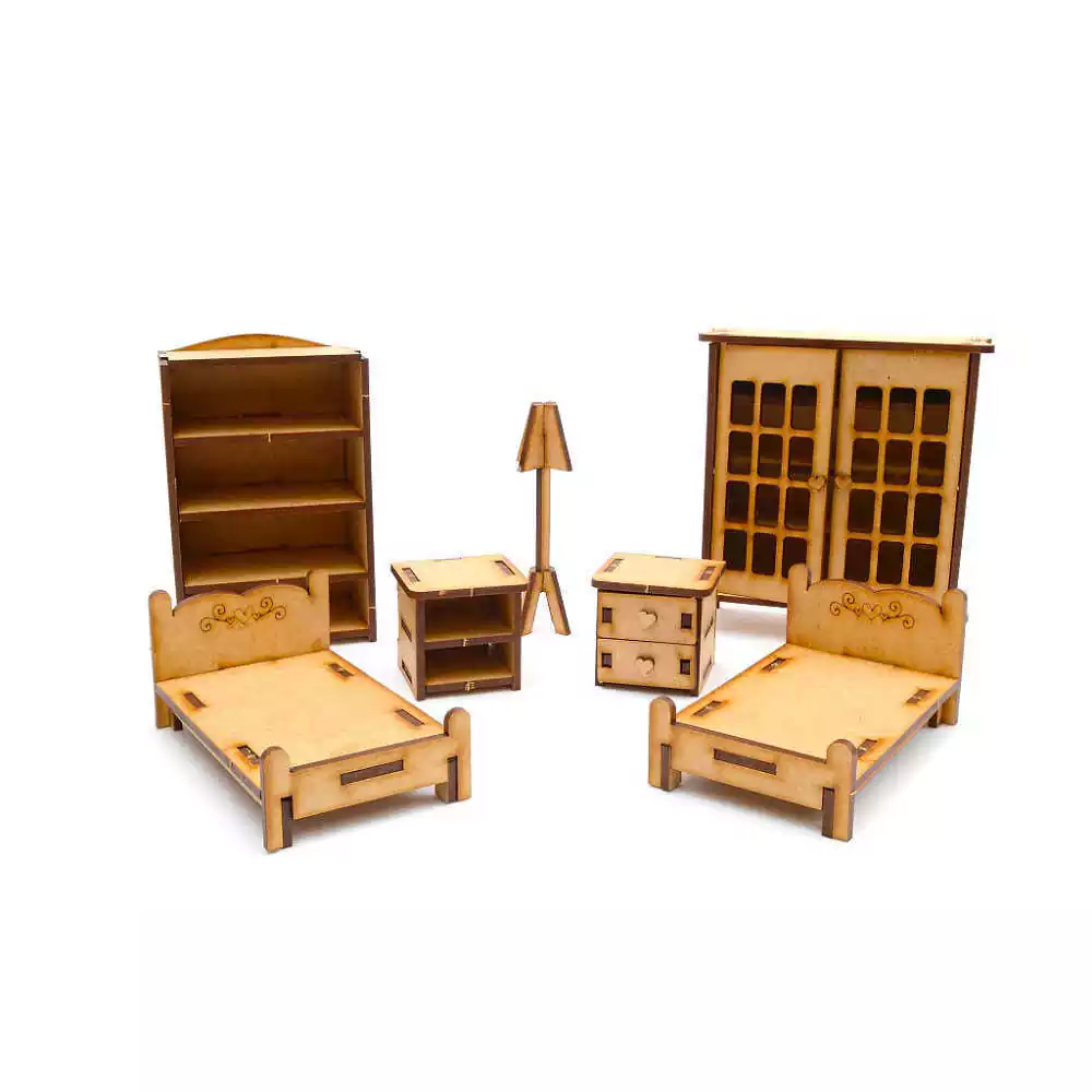 Móveis para Casinhas De Bonecas Compatível Com Bonecs De Até 10 Cm De Altura MDF NATURAL com 29 Peças