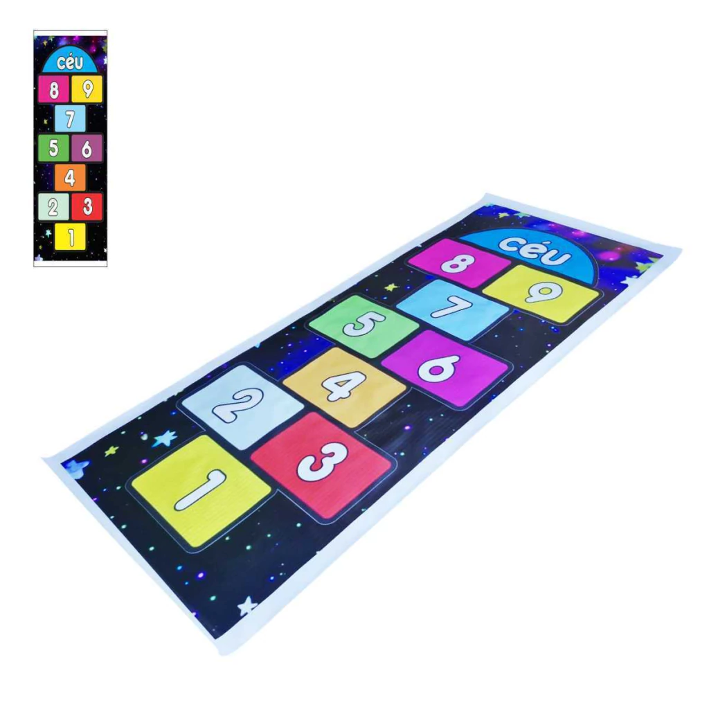 A Amarelinha é um jogo clássico que desenvolve a coordenação motora, equilíbrio, concentração e raciocínio lógico das crianças. Este tapete pedagógico foi criado para tornar a aprendizagem mais divertida, estimulando habilidades essenciais de forma lúdica e interativa.